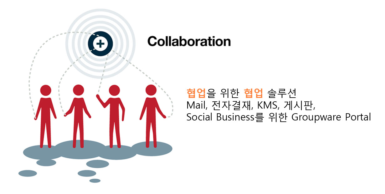 IBM® Notes® 및 Domino® 기반의 그룹웨어는 다양한 OS와 멀티브라우저에서 메일, 전자결재, 게시판 등 협업을 위한 클라이언트 및 서버 소프트웨어를 제공합니다. 또한 모든 규모의 비즈니스에서 운영을 가속화하고 의사결정 능력과 생산성을 향상시키고 향상된 비즈니스 결과를 실현할 수 있도록 지원합니다.