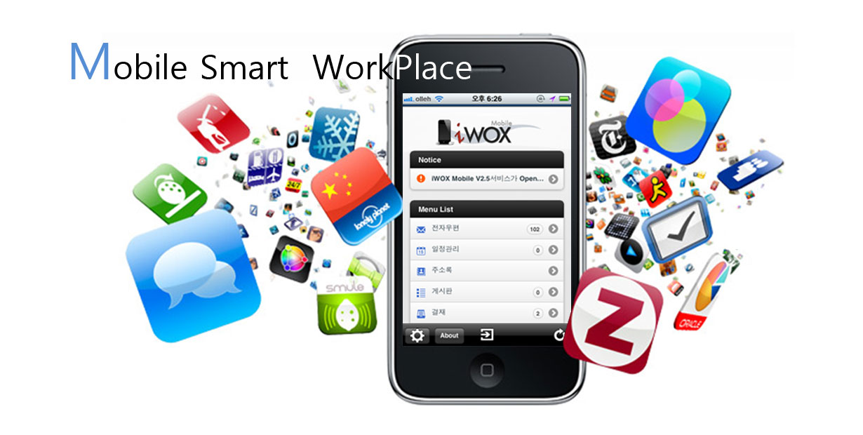 반응형 웹기술 기반의 기업용 통합 모바일오피스 업무 환경을 위한 Platform을 제공합니다. 단순 모바일 그룹웨어 뿐만 아니라 기업 내.외부에서 일어나는 다양한 비즈니스 프로세스를 쉽고 빠르게 모바일 환경으로 확장하기 위한 강력한 Platform을 제공합니다.