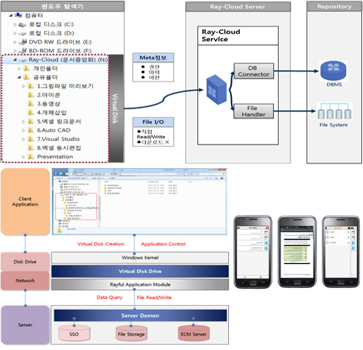 문서중앙화 『문서중앙화 시스템』 은 회사 문서의 자산화, 문서 기반 협업 활성화 및 문서 혁신의 체질화를 목적으로 문서 기반 협업 환경을 구축하여 업무 효율성 및 생산성을 향상시키는 시스템입니다. Ray.Cloud 는 기업 내에서 생성된 기업 컨텐츠를 PC가 아닌 중앙 문서관리서버로 저장하여 관리할 수 있도록 하는Cloud Platform 기반의 ECM입니다.